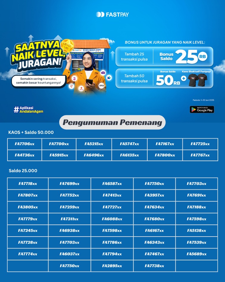 Pemenang berhak mendapatkan Saldo + Kaos dari Fastpay.