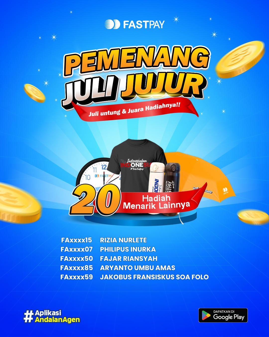 Total hadiah 15 Juta untuk Juragan yang ikuti program Juli JUJUR Fastpay